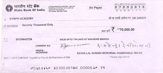 Under guidance of Mrs. Mahendra Devi Somani in memory of her husband late Sh. Ratan Lal Somani to fulfill his dream of social service in the field of health and education. This trust helps needy and poor patients to provide medical facilities at subsidized rates and/or free of cost. The trust is tax exempted under 80G exemption. We appeal to you to donate generously to the trust to serve society by cheque / DD in favor of “Ratan Lal Somani Memorial Charitable Trust” payable at Jaipur. |