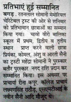 RATAN LAL SOMANI MEMORIAL SCHOLARSHIP (Educational Scholorship):